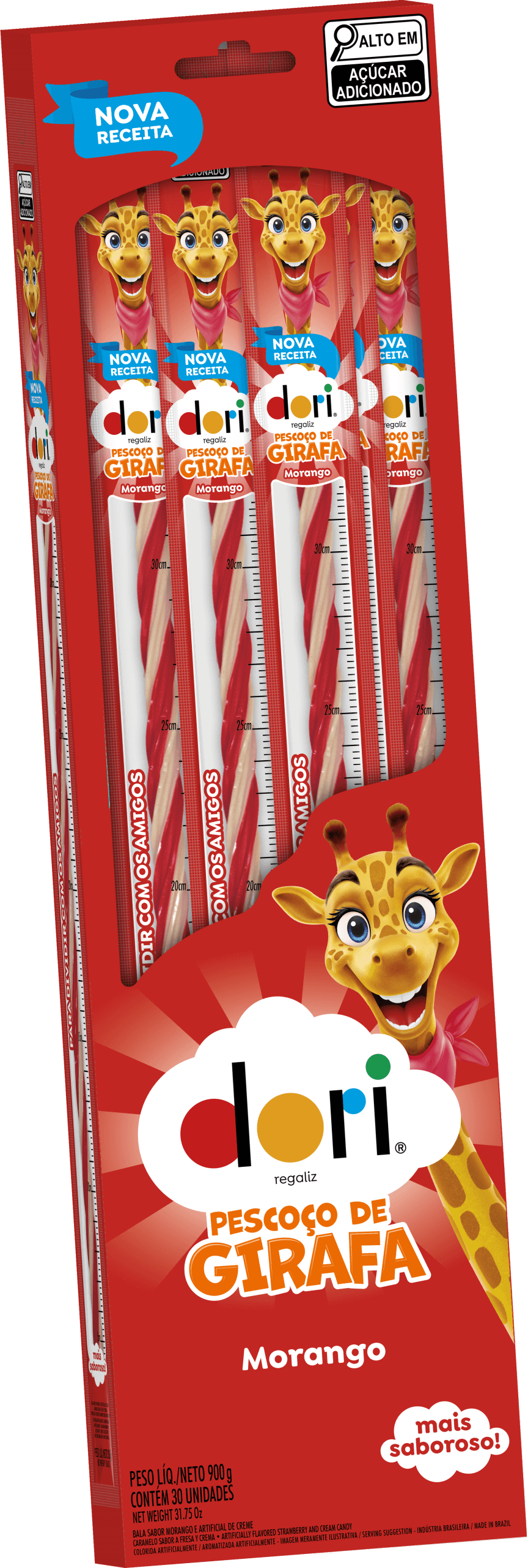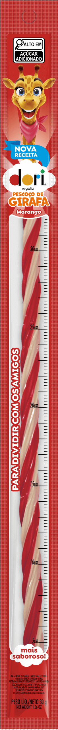 BALA SABOR MORANGO E SABOR ARTIFICIAL DE CREME, COLORIDA ARTIFICIALMENTE. INGREDIENTES: XAROPE DE MALTOSE, AÇÚCAR, FARINHA DE TRIGO ENRIQUECIDA COM FERRO E ÁCIDO FÓLICO, DEXTROSE, GORDURA VEGETAL, AMIDO DE MILHO, GELATINA, ÓLEO VEGETAL, ACIDULANTE ÁCIDO CÍTRICO, EMULSIFICANTES MONO E DIGLICERÍDEOS DE ÁCIDOS GRAXOS E ÉSTERES DE MONO E DIGLICERÍDEOS DE ÁCIDOS GRAXOS COM ÁCIDO ACÉTICO, REGULADOR DE ACIDEZ CITRATO DE SÓDIO, CORANTE INORGÂNICO DIÓXIDO DE TITÂNIO, AROMATIZANTES, UMECTANTE SORBITOL, GLACEANTE GOMA LACA E CORANTE ARTIFICIAL VERMELHO ALLURA Ac